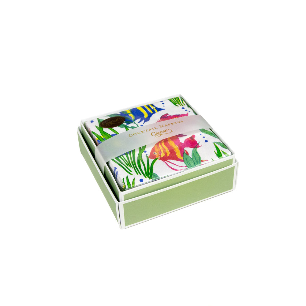 Caspari triple-ply napkins are both striking in design and durable in function. Thoughtfully designed to elevate any occasion, they feature artwork and designs from museums and artist around the world. Each is made of triple-ply tissue and printed in Germany with non-toxic, water-soluble dyes and food-safe ink. They are FSC-certified and made using environmentally-conscious raw materials, which ensures they are both biodegradable and compostable. Our napkins bring eco-friendly style and convenience to your tabletop. 40 napkins included in an eco-friendly gift box with acetate lid.