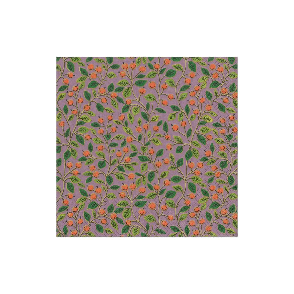 Berries and Leaves Boxed Paper Cocktail Napkins in Soft Plum - 40 Per Box