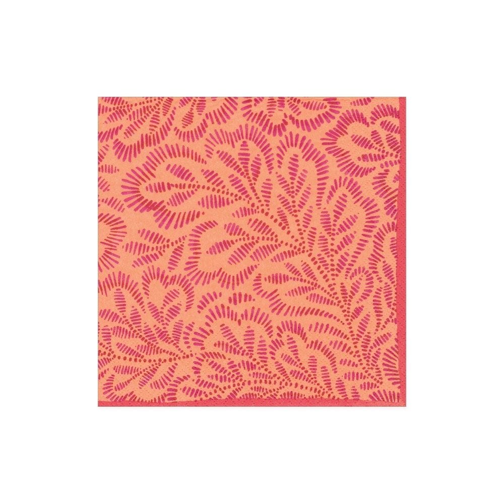 Block Print Leaves Boxed Paper Cocktail Napkins in Fuchsia & Orange - 40 Per Box