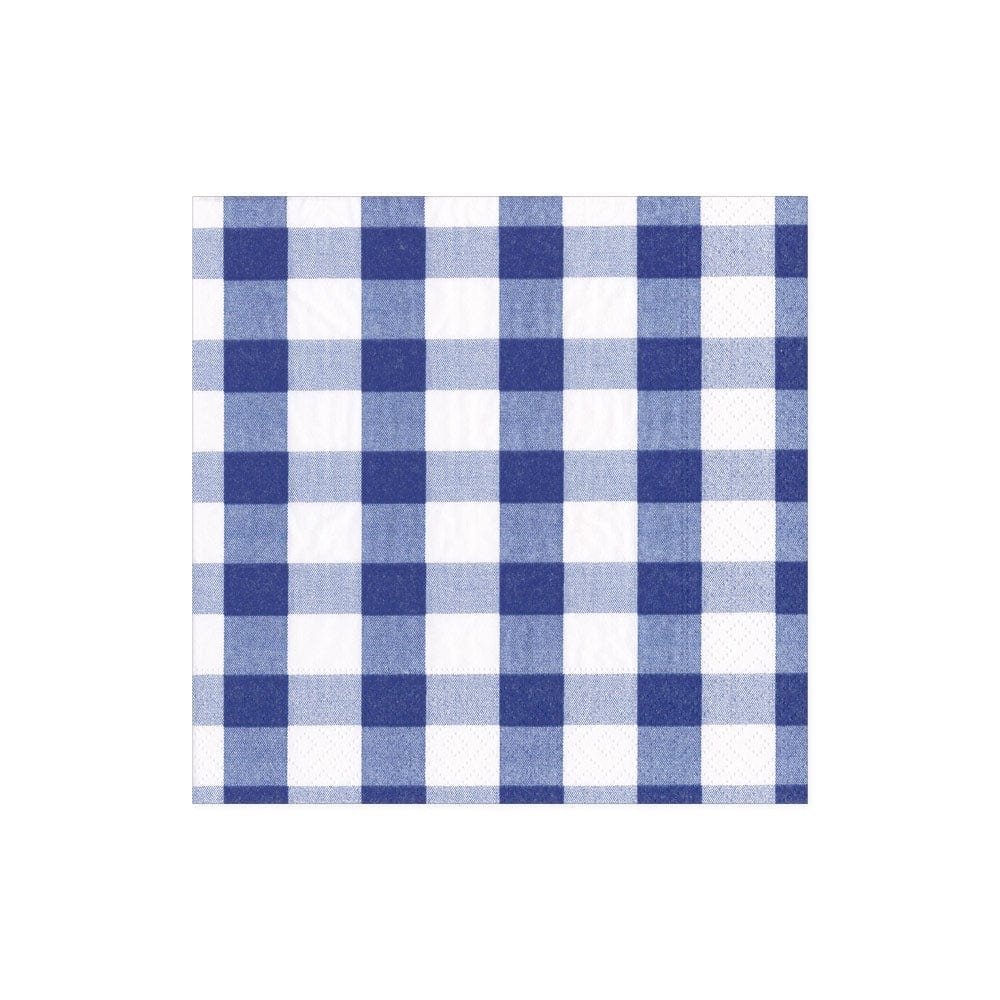 Gingham Boxed Paper Cocktail Napkins in Blue - 40 Per Box