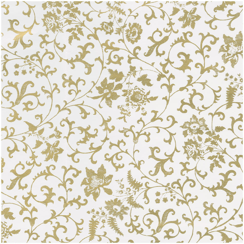 Flora Scrollwork White/Gold Roll Wrap 30 Inch X 8Ft-2 Inch Core