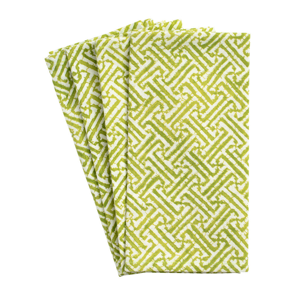 Fretwork Green Fabc Cotton Napkin-Set Of 4