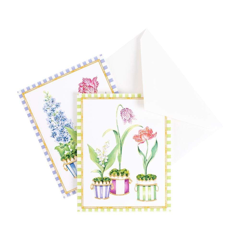 A stationery piece for any occasion, Caspari boxed note cards are a perfect staple for the home and office. Recipients of your notes will be greeted by stunning licensed artwork from artist and museums around the world. Our note cards are printed in on high-quality cardstock by a respected printing facility in Switzerland. It is one of the only printers in the world with the ability to gold bronze. Gold bronzing is a unique printing technique used by our Swiss printer that adds metallic details by dusting each card with a golden powder to create the shimmering accents that grace many of our cards. Inside, the notecards are blank, leaving you with room to write any sentiment for any occasion from a simple “thank you” to a short letter. The assortment of cards arrives in a gold foil box, making them perfect for gift giving. Contains 10 note cards and 10 coordinating envelopes.