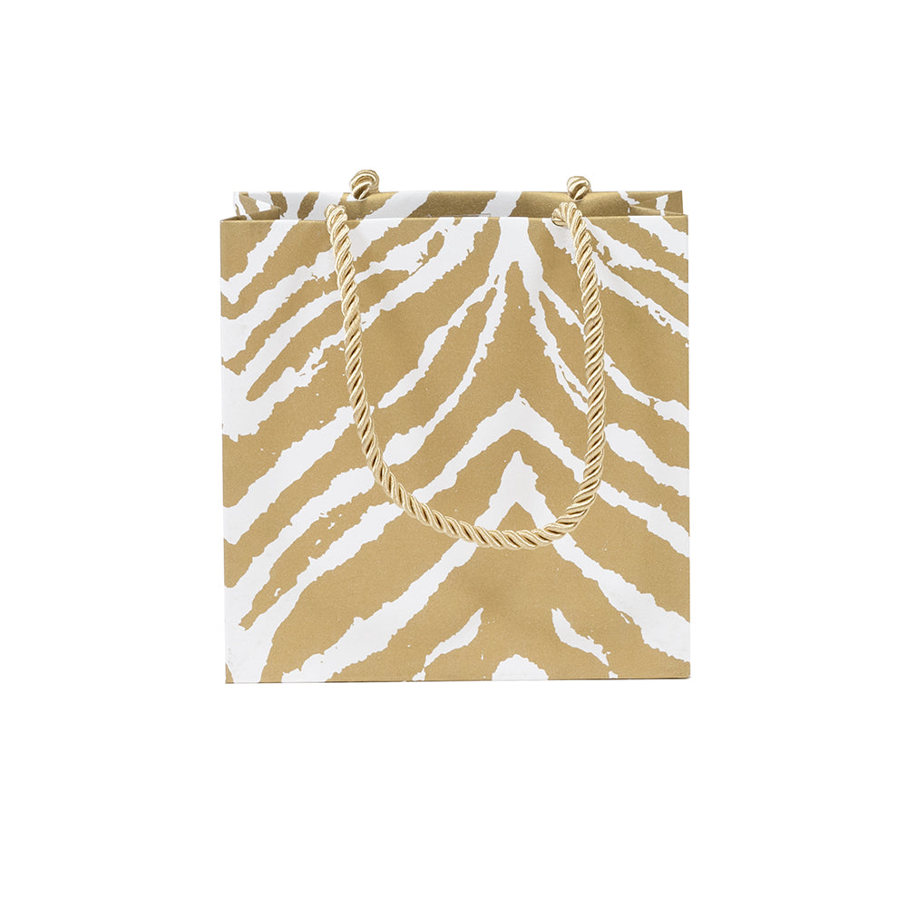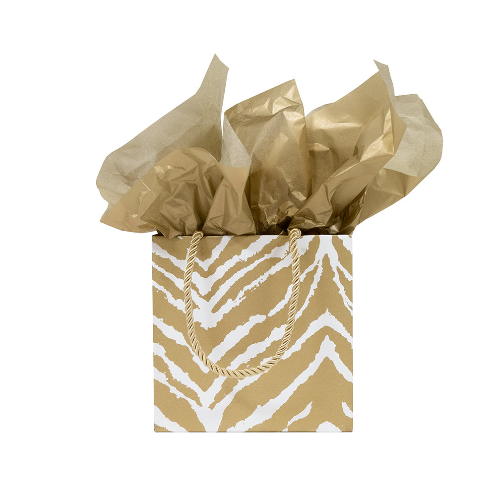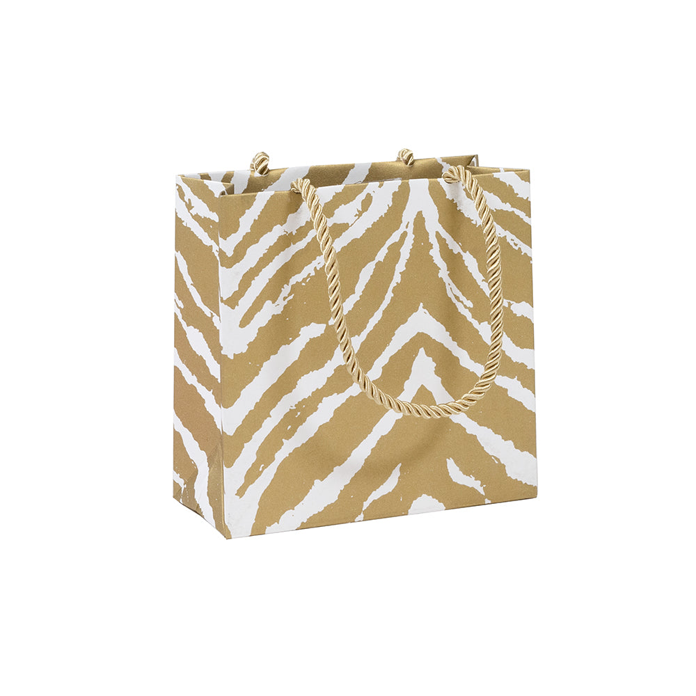Go Wild Gold/White Gift Bag Sm Sq. 5 3/4X2 1/2 X 5 3/4