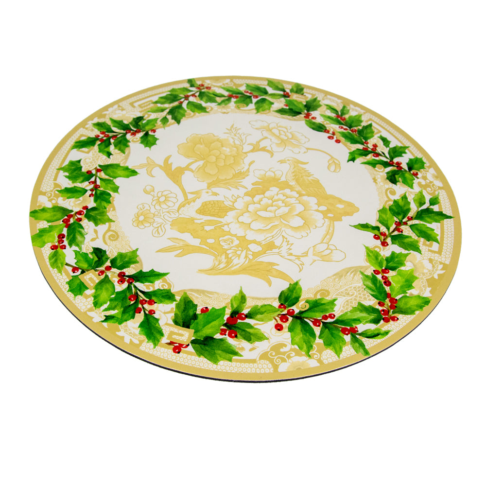 Holly Ceramic Ivory/Gold Hardback Placemat - 1 count