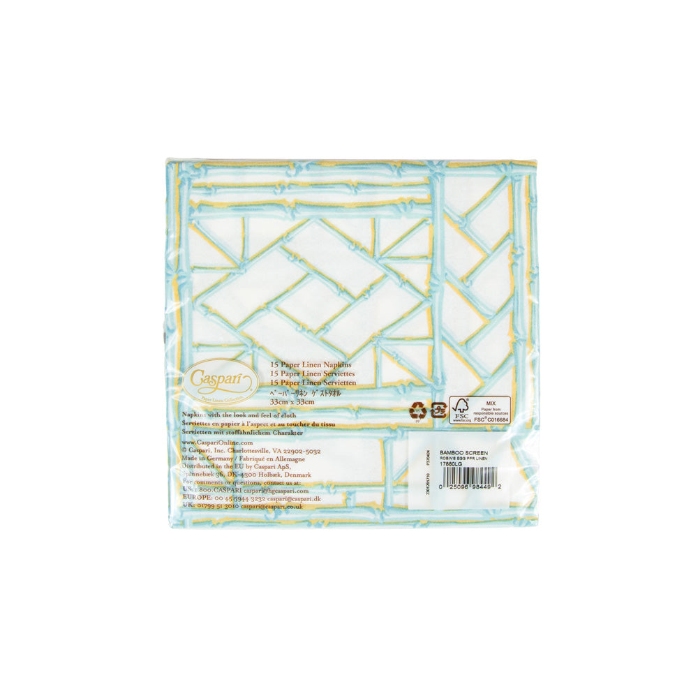 Caspari's Paper Linen offers the look of linen, the feel of cloth, and the convenience of paper. Paper linen napkins are extra absorbent and durable, making them ideal for entertaining and everyday use. They are made of ultra-durable, linen-like airlaid paper and printed in Germany with nontoxic, water-based, food-safe ink. These napkins are made using environmentally-conscious raw materials, which ensures that they are both biodegradable and compostable. Our vibrant color options and beautiful designs elevate any occasion. 15 napkins per package.