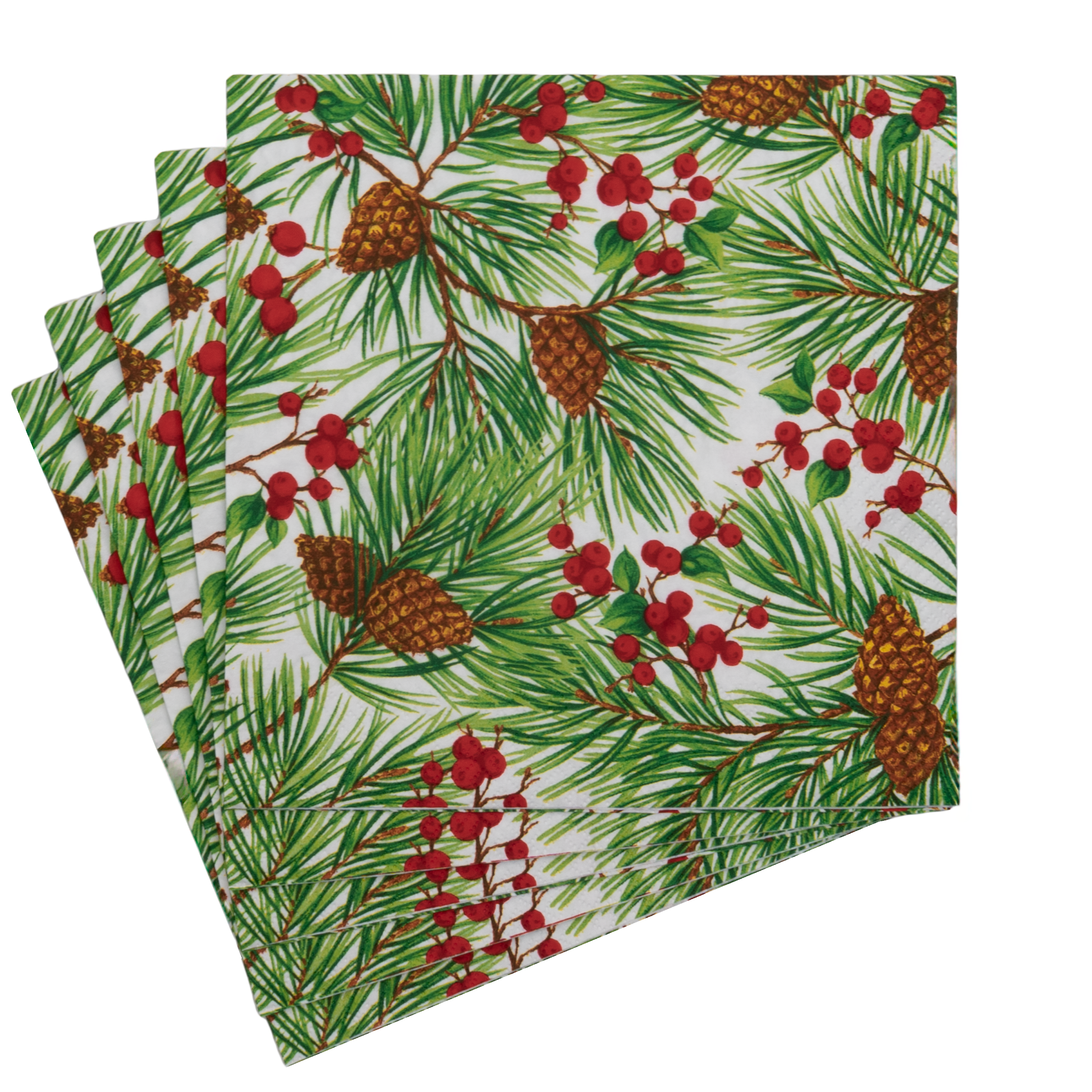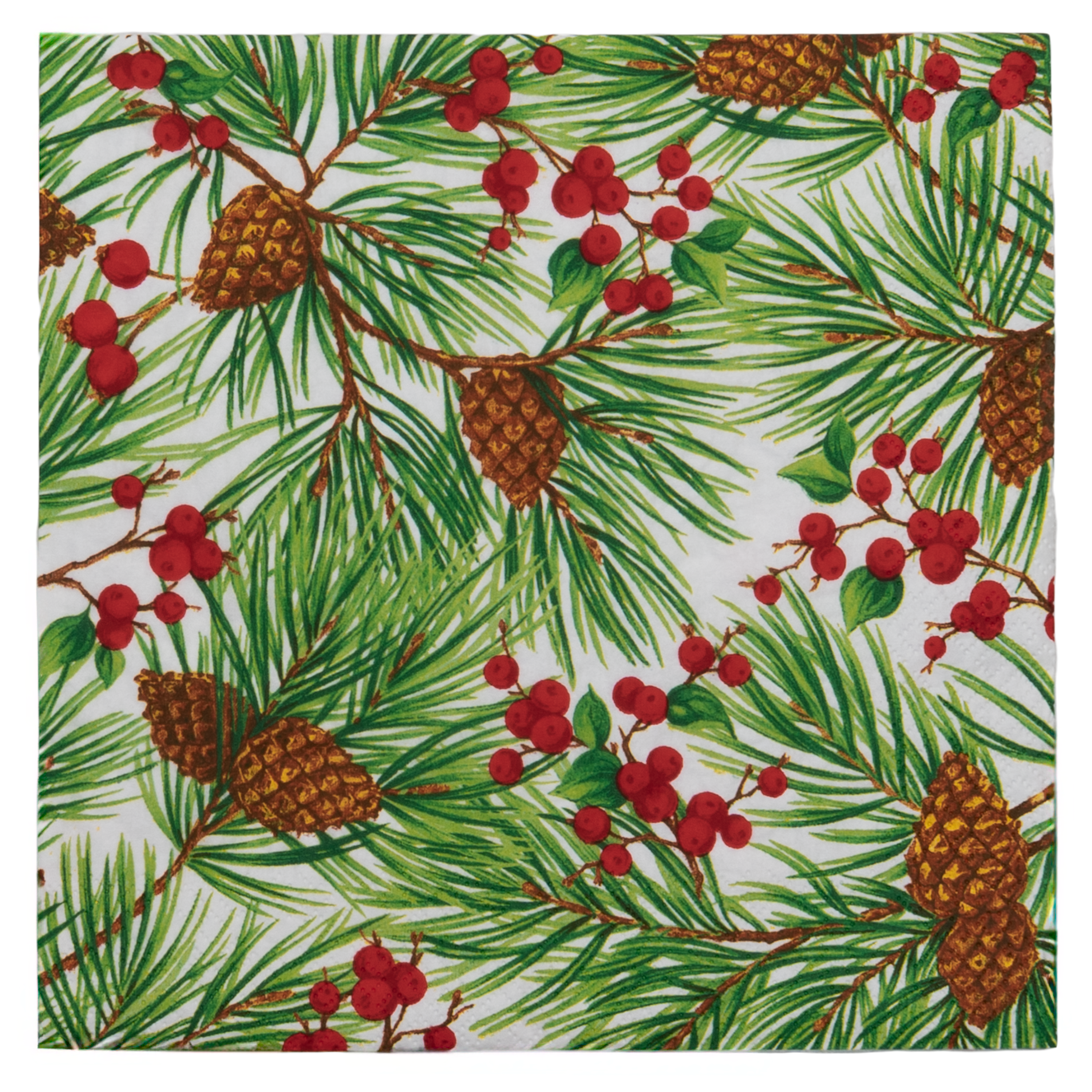 Evergreen and Berries White Dinner Napkins - includes 20 Dinner Napkins