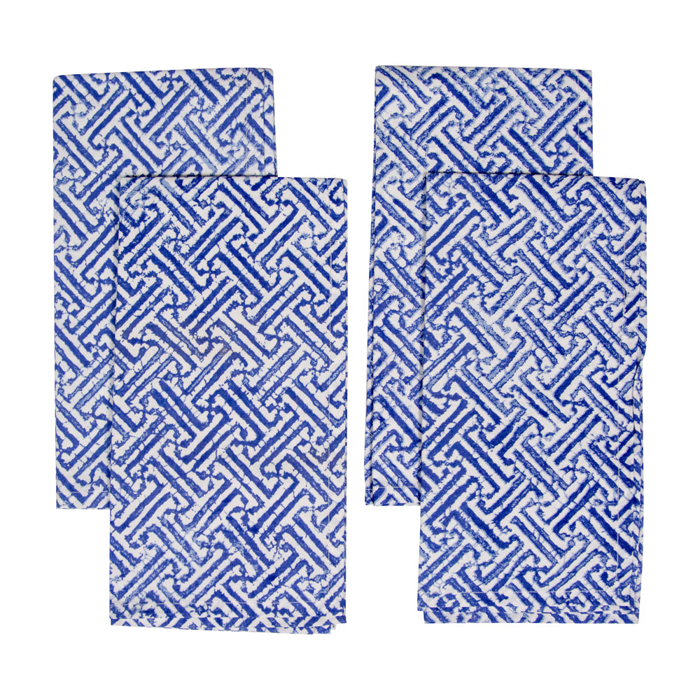 Fretwork Blue/White Fabc Cotton Napkin-Set Of 4