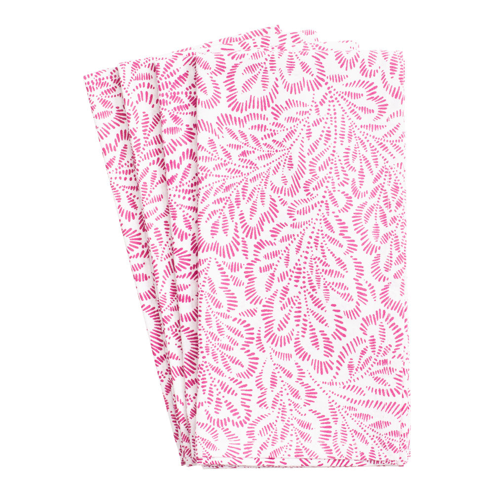 Block Print Leaves Fuchsia/White Fabc Cotton Napkin-Set Of 4