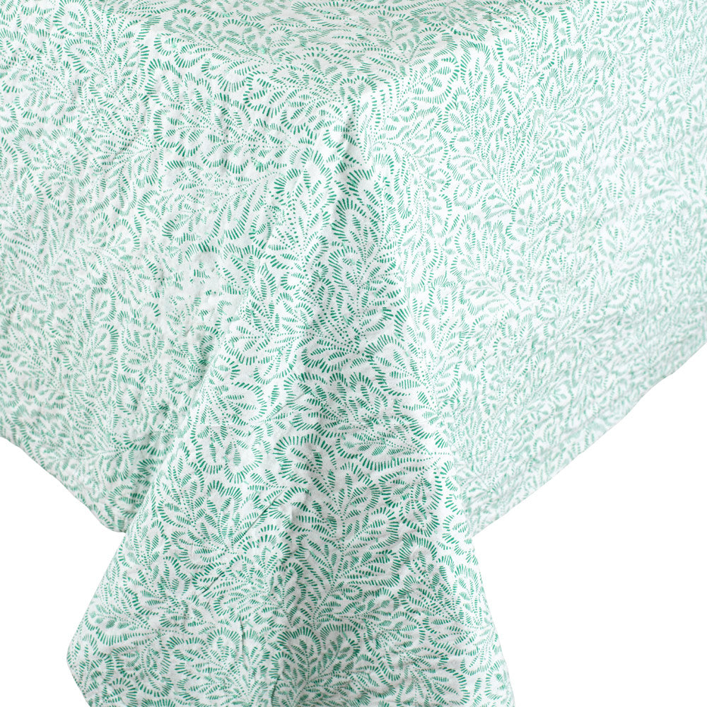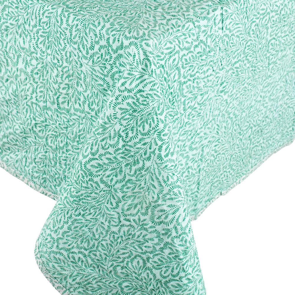 Block Print Leaves Green-Reversible Fabc Cotton Tblcvr-70.5 X 70.5 Inch
