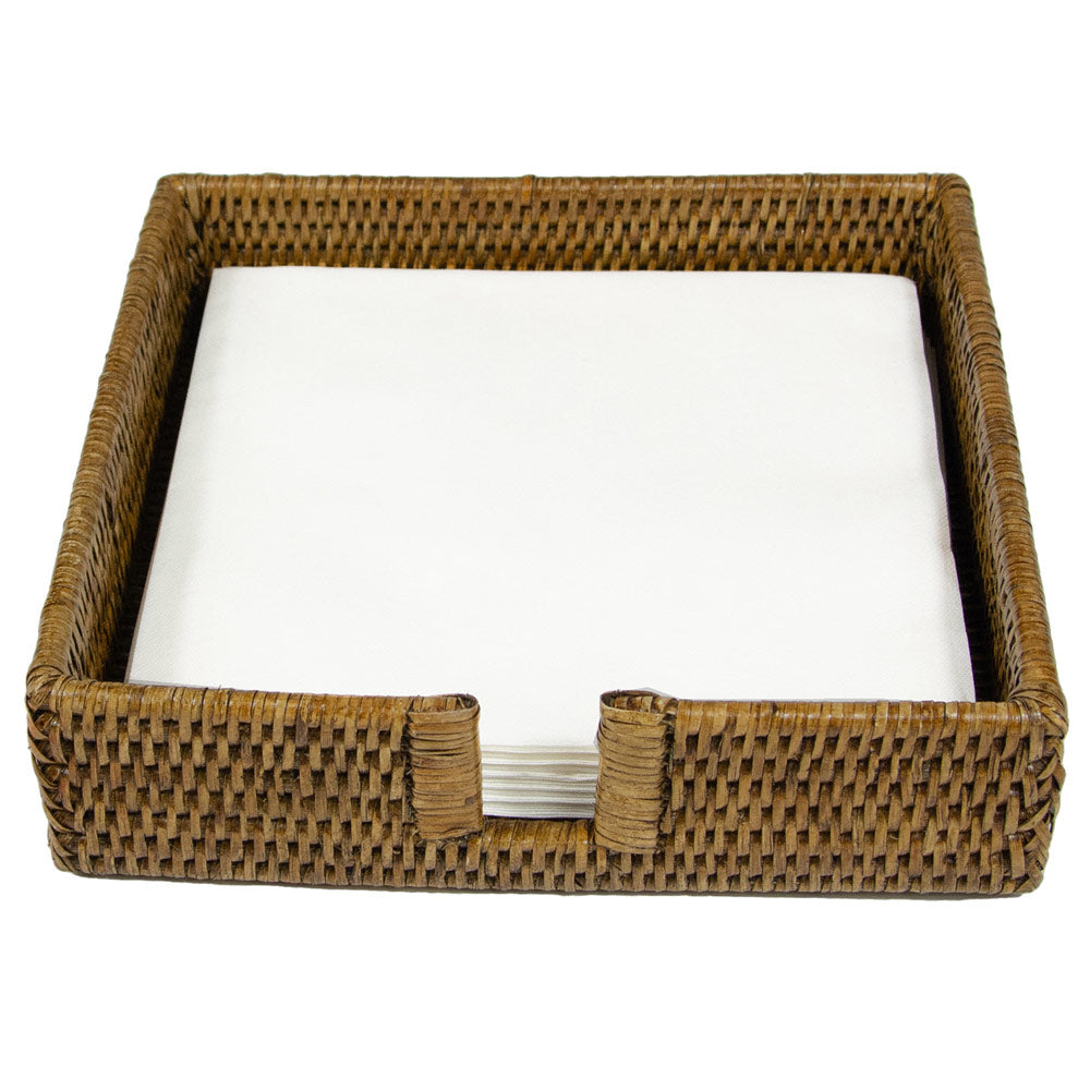 Perfectly sized to hold Caspari paper and paper linen napkins, our napkin holders are an easy addition to your tabletop dcor. Use them to keep napkins neatly presented and always within reach in your dining room, on your coffee table, kitchen counter, or in a guest bath. Our rattan style napkin holders coordinate well with all Caspari Napkin designs, colors, and seasonal styles. Made from a durable rattan made in Myanmar, they can be used in indoor settings.