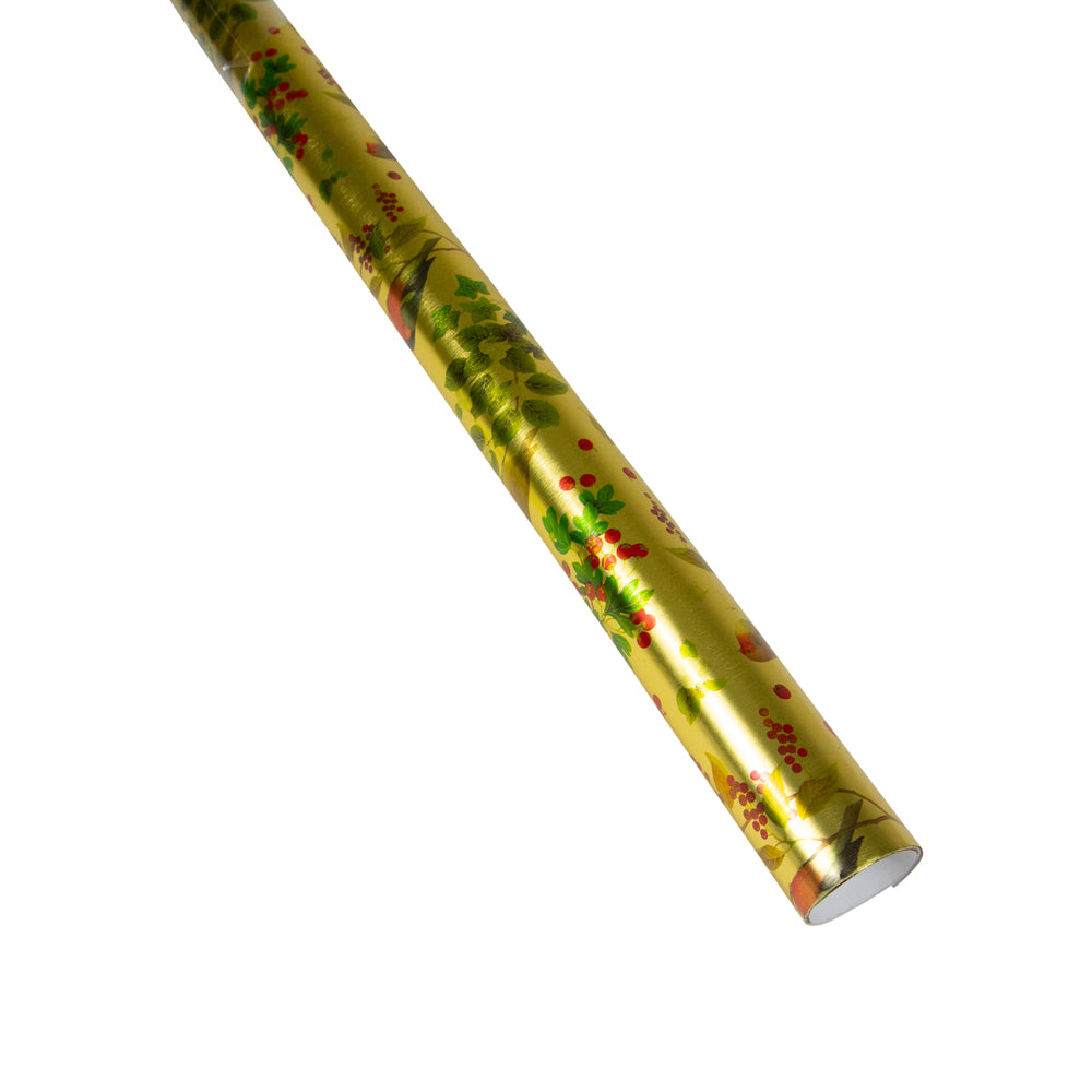Winter Birds Gold Foil Embossed Roll Wrap 30 Inchx 6 Ft Foil-2 Core