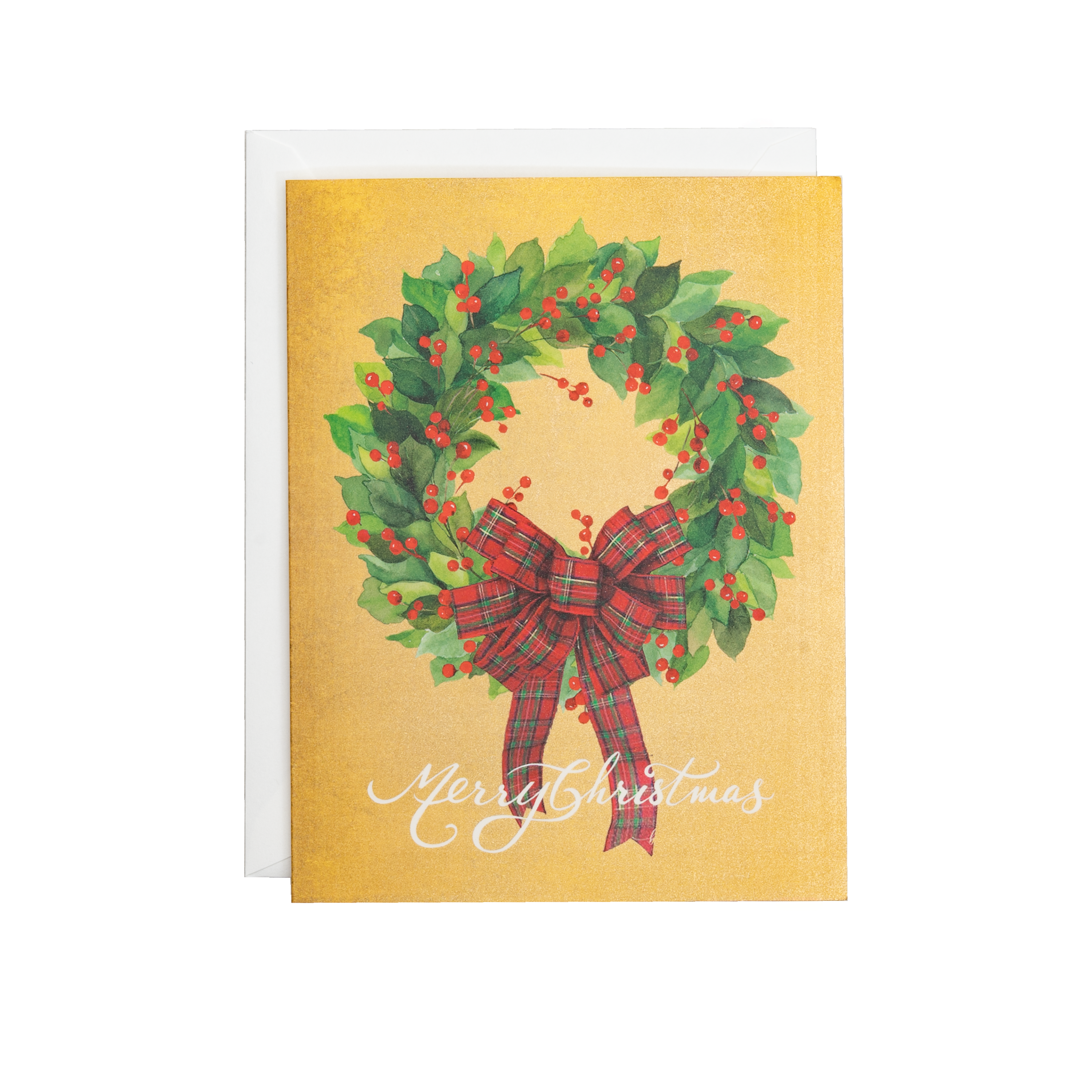 Leaf Wreath With Plaid Bow Large Boxed Christmas Cards - includes 15 Boxed Christmas Cards