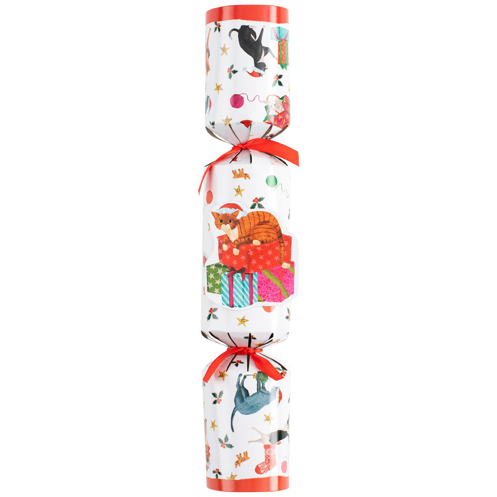 Now, however, you can bring your pet in on the fun. This individual 12-inch long cracker contains a single pet toy trinket. Each of the cracker’s three segments is wrapped in classic Caspari paper and separated by a bow. Grab the end segments and pull apart to open the center section with a “bang” and reveal the prize inside.