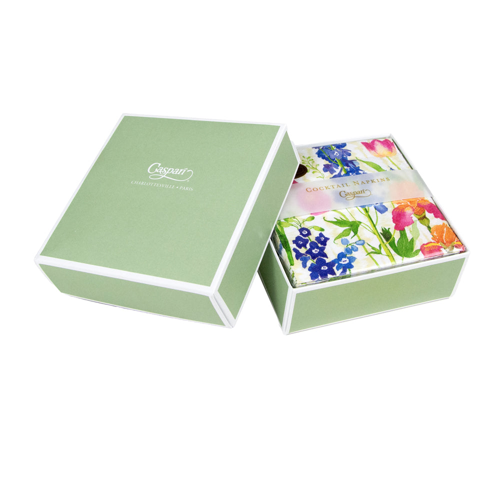Caspari triple-ply napkins are both striking in design and durable in function. Thoughtfully designed to elevate any occasion, they feature artwork and designs from museums and artist around the world. Each is made of triple-ply tissue and printed in Germany with non-toxic, water-soluble dyes and food-safe ink. They are FSC-certified and made using environmentally-conscious raw materials, which ensures they are both biodegradable and compostable. Our napkins bring eco-friendly style and convenience to your tabletop. 40 napkins included in an eco-friendly gift box with acetate lid.